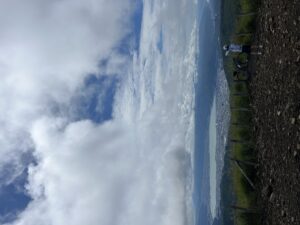 霧に包まれた林道を抜けピークに着くと陽がさしてきました