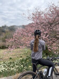 鋸南町の水仙ロードは里山風景の中を走る細い道